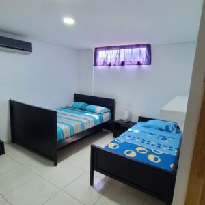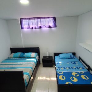 Este apartamento esta ubicado en piso 2, las habitaciones son diferentes entre ellas, una tiene 2 camas dobles y la otra tiene una cama doble, otra individual y una tipo nido individual tambien. Relájate con toda la familia en este alojamiento donde la tranquilidad se respira. Ofrecemos Limpieza, Cambio de Toallas y Sábanas Cada diez días sin costos adicionales. Esta en un Segundo piso, así que deben subir Gradas (Escaleras) Nuestra Piscina es compartida con Todos los Apartamentos. la piscina Está en otro LOTE que está a 60 pasos del apartamento. Estamos en Bello Horizonte. Que esto no te Sorprenda y nos Califiques Mal. Cuenta con Netflix, Totalmente Gratis.