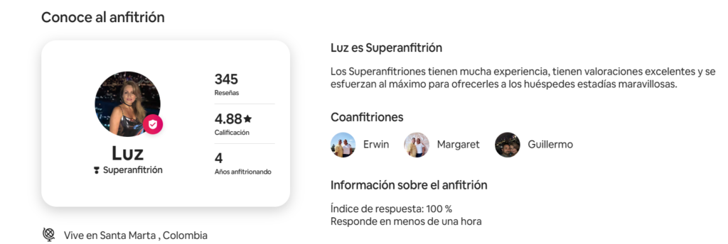 EXCELENTE A base de 52 reseñas Publicado en Alex Ruiz sanchezTrustindex verifica que la fuente original de la reseña sea Google. Muy confortable el hostal súper cerca de playa dormida, muy bonito el apartamento ,todo muy organizado. DON ERWIN muy amable súper servicial y oportuno Volveré a este hermoso lugar 🙏👏🏼Publicado en Nicol VelosaTrustindex verifica que la fuente original de la reseña sea Google. Excelente, un buen espacio comodo y agradablePublicado en Mary MartinezTrustindex verifica que la fuente original de la reseña sea Google. Estamos muy complacidos por la atención y amabilidad recibida, desde el primer día hasta el último. Mil gracias por todo. Maribel desde BogotáPublicado en Ana Catalina Garzón SilvaTrustindex verifica que la fuente original de la reseña sea Google. El apartamento es excelente, tiene todas las comodidades y no hay ruido cerca por lo q se puede descansar muy bn, pero además Erwin es un excelente anfitrión y tienen una guía completa de lugares de comida, transporte, centros comerciales, playas y Tours entre otras cosas, es increíble porq se tienen toda la información que uno pueda necesitar para unas buenas vacaciones. Además el horario de la piscina es ideal para pasar el día en la playa y llegar a descansar en la piscina. Vale 100% la pena hospedarse alláPublicado en ivonne nieblesTrustindex verifica que la fuente original de la reseña sea Google. Excelente lugar, excelente servicio, muy recomendadoPublicado en Jose LinaresTrustindex verifica que la fuente original de la reseña sea Google. La estadía fue sensacional, de manera particular por 5 circunstancias: la 1ra, por la comodidad, la dotacion y aseo, que tiene el apartamento; lo segundo, por la tranquilidad que tiene en sus alrededores; la 3ra, por la cercanía a la playa, 4ta, por la facilidad para las diferentes rutas de transporte y 5ta, por la cercanía al aeropuerto. De manera especial, la amabilidad, cortesía de don Erwin, quien siempre estuvo atento a cualquier orientación.Publicado en lezly santanaTrustindex verifica que la fuente original de la reseña sea Google. Es un lugar muy bonito y bien equipado, el anfitrión fue muy amable y tiene muy cerca una playa preciosa, sin duda generamos lindos recuerdos alliPublicado en Lizeth Katerin Beltran TapiasTrustindex verifica que la fuente original de la reseña sea Google. Es super recomendado es muy independiente, la playa cercana es muy tranquilaPublicado en Johan CollazosTrustindex verifica que la fuente original de la reseña sea Google. Muy bueno el espacio, apenas para lo necesitado. Volveré apenas pueda.Publicado en mauricio martinezTrustindex verifica que la fuente original de la reseña sea Google. Todo exelenteVerificado por: TrustindexLa insignia verificada de Trustindex es el símbolo universal de confianza. Solo las mejores empresas pueden obtener la insignia verificada si tienen una puntuación de revisión superior a 4.5, basada en las reseñas de clientes de los últimos 12 meses. Leer más